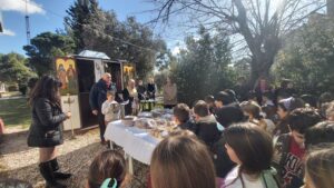 Με χαρά τιμήσαμε στο σχολείο μας τη γιορτή των Τριών Ιεραρχών, που είναι προστάτες της Παιδείας και των Γραμμάτων. Στο εκκλησάκι του σχολείου μας τελέστηκε αρτοκλασία, με τη συμμετοχή μαθητών και εκπαιδευτικών. Την ακολουθία ευλόγησε ο πατέρας Λάμπρος από την Αγία Τριάδα Θρακομακεδόνων, ο οποίος μετέφερε στα παιδιά το πνεύμα και το μήνυμα της ημέρας. Ιδιαίτερη συγκίνηση προκάλεσε η ανάγνωση της επιστολής του Σεβασμιώτατου Μητροπολίτη Αχαρνών, Ιλίου και Πετρουπόλεως κ.κ. Αθηναγόρα, αφιερωμένη στη σημασία των Τριών Ιεραρχών και στις αξίες που πρεσβεύουν για τη ζωή και την παιδεία των νέων. Μετά το τέλος της δέησης οι άρτοι μοιράστηκαν στους μαθητές.